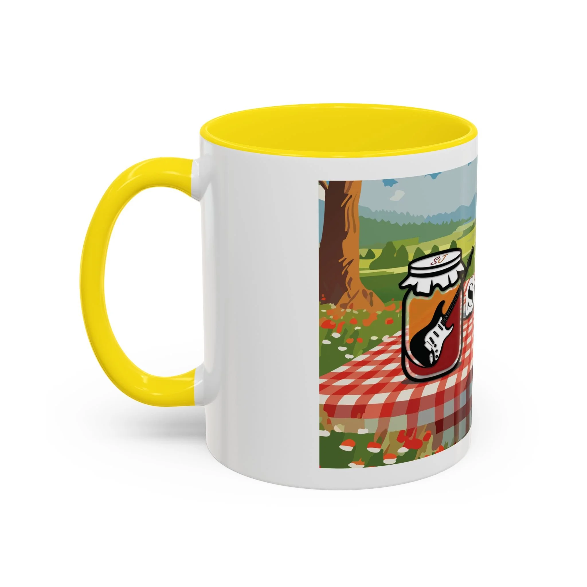 Meet your next favorite morning companion, the accented ceramic mug. This mug brings the perfect blend of style and functionality to elevate your coffee or tea ritual. Available in two generous sizes, 11oz (0.33 l) and 15oz (0.44 l), this mug offers ample space for your favorite brew. Made with white ceramic and sporting a sleek glossy finish with eye-catching contrast, this mug is a bliss both to use and to look at. The ergonomic C-shaped handle provides a comfortable grip, while the lead and BPA-free construction guarantee peace of mind with every sip.